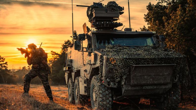 photo : le Griffon est un véhicule blindé multi rôles, connecté aux autres unités du champ de bataille © Armée de terre.